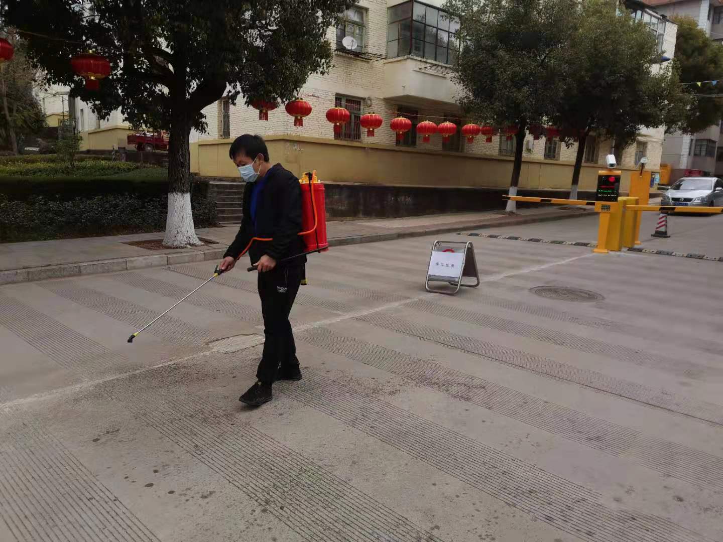 自1月29日起,后勤管理部每日對(duì)集貿(mào)市場(chǎng)、各值班守衛(wèi)門房進(jìn)行消毒。