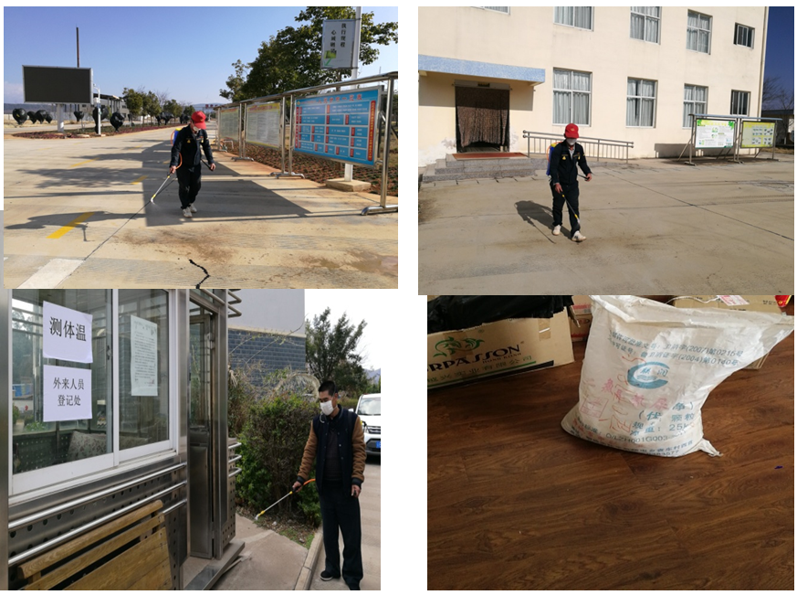 武定分公司在防疫工作領(lǐng)導(dǎo)小組的指揮協(xié)調(diào)下,編制了分公司應(yīng)對(duì)新冠疫情工作方案,及時(shí)在中干微信群、黨支部微信群和員工微信群中發(fā)放應(yīng)對(duì)疫情工作通知和防疫宣傳資料,每日核實(shí)各部門(mén)職工出行及健康情況,按要求匯總上報(bào)公司總部。各黨支部、各部門(mén)、生產(chǎn)車(chē)間,全體黨員、干部職工群策群力應(yīng)對(duì)疫情,加強(qiáng)對(duì)各區(qū)域的值守,加強(qiáng)對(duì)新冠疫情防控知識(shí)的宣傳,加強(qiáng)防疫物品的采購(gòu)配置,積極與武定縣相關(guān)部門(mén)聯(lián)系,得到政府支持,無(wú)償給分公司發(fā)放了十分緊缺的消毒液,并采購(gòu)到三只非接觸式紅外測(cè)溫儀,分別在辦公區(qū)、生產(chǎn)區(qū)和平田生活區(qū)進(jìn)行人體測(cè)溫使用。