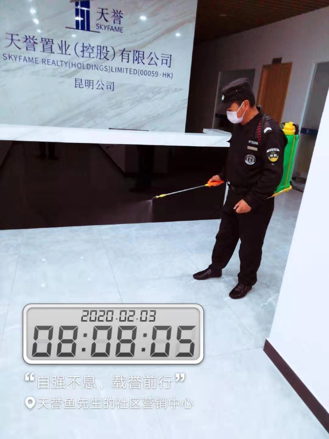 2月3日,安化地產(chǎn)公司物業(yè)管理對售樓中心、樣板房區(qū)和辦公區(qū)進行消毒處理,提前作疫情防控處理準(zhǔn)備。