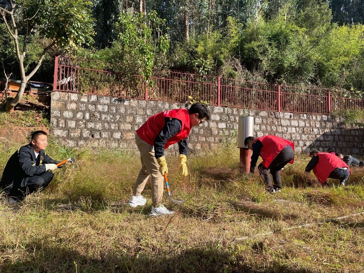 活動(dòng)中,三十余名黨員同志分為兩個(gè)組。一組負(fù)責(zé)清理水泵房邊及附近住宅旁山坡上的藤蔓、雜草、垃圾。大家揮動(dòng)著鐮刀、鐵鍬,在無法使用工具的區(qū)域徒手清理,最后將清理出來的藤蔓、雜草、垃圾分類打包進(jìn)行處理。另一組負(fù)責(zé)清理生活區(qū)道路上的垃圾,打掃犄角旮旯的衛(wèi)生死角,清理群眾反映下雨易堵的下水道。