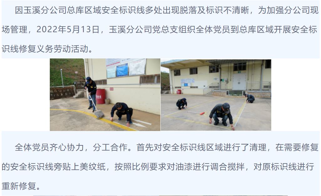 玉溪分公司組織黨員開(kāi)展修復(fù)安全標(biāo)識(shí)線義務(wù)活動(dòng)