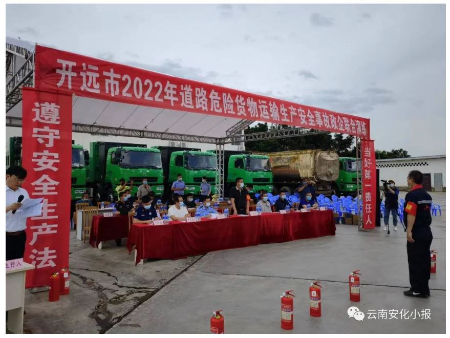 開遠市安全生產委員會為進一步全面壓實各危貨運輸企業(yè)主體責任,著力防范化解重大安全風險,推動全市運輸安全生產形式持續(xù)穩(wěn)定,為黨的二十大勝利召開創(chuàng)造良好的安全環(huán)境,決定由開遠市應急管理局牽頭組織云南神斧爆破工程有限公司在內的開遠市屬八家危險貨物運輸企業(yè)于6月17日開展一次政企聯(lián)合應急救援演練。