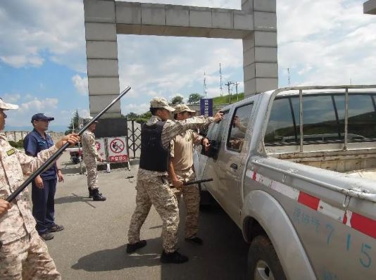 演練場景模擬二:大門沖撞。2名不法分子駕車至公司大門口,企圖強制進入生產區(qū)實施恐怖活動;公司應急專業(yè)組對此突發(fā)事件進行先期處置,東川區(qū)反恐怖領導小組趕到現場,抓捕犯罪嫌疑人的場景。