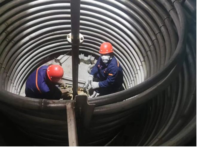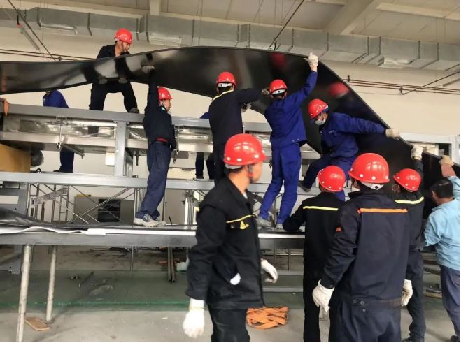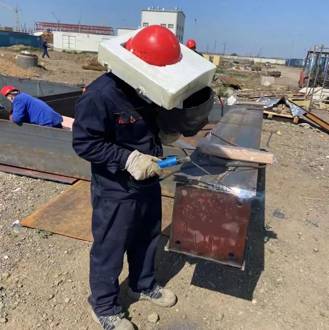 初到異國,安裝隊(duì)員們很快克服了當(dāng)?shù)貧鉁伢E冷驟熱、時(shí)??耧L(fēng)暴雨的極端天氣和飲食習(xí)慣上的不適應(yīng),與燃一公司、銳達(dá)公司的安裝隊(duì)員們一同投入安裝工作中。面對安裝過程中,語言不通、工裝夾具考慮不周全、輔助工具不夠、道路不通等問題,大家集思廣益,群策群力:語言不通,用手比劃;叉車不夠就肩扛手提;道路不通就填土鋪板;叉車動(dòng)力不足就借用土建方的裝載機(jī)、挖機(jī)、隨車吊、汽車吊。隊(duì)員們趴在地上畫線、頂著風(fēng)切割材料、操作著大型砂輪機(jī)切割型材、在烈日下焊接安裝已成了工地上的一道“風(fēng)景線”。整個(gè)工地?zé)o論室內(nèi)室外,口號聲此起彼伏,相互回應(yīng),進(jìn)設(shè)備、進(jìn)材料,畫線、定位、制作平臺,安裝管路,安裝線路,壓力試漏修補(bǔ),制作保溫安裝,涂漆,打掃衛(wèi)生等一系列安裝工作都進(jìn)行得井然有序。